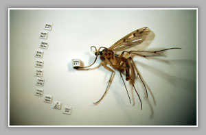 Для создания «Хамелеона» Коненко использовал совсем крошечные экслибрисы – без микроскопа они выглядят как точки, оставленные шариковой ручкой. Изображения оттиснуты не на бумаге (бумажные волокна не могут передать их без искажений), а на тончайшей пленке.