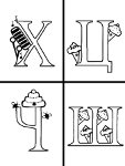 Буква Х - тоже любительница музыки, около нее лежит металлофон и летают какие-то нотки.