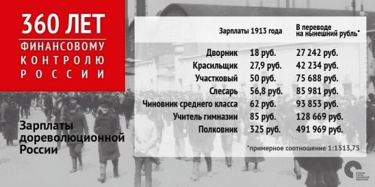 Счётная палата сравнила зарплаты в дореволюционной России с современными. Разница ощутима.