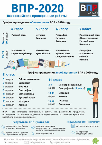 Так, со 2 по 20 марта пройдут ВПР для 11- и 10 классников, которые напишут работу по географии. Далее 11-классники напишут ВПР по тем учебным предметам, которые не выбрали для ЕГЭ. С 30 марта по 24 апреля состоятся ВПР для обучающихся 4-8 классов по нескольким учебным предметам. При этом для школьников с 4 по 7 класс ВПР проводятся в штатном, обязательном режиме, тогда как участие 8, 10, 11 классов в ВПР в 2020 году проводится в режиме апробации, то есть школы самостоятельно принимают решение о проведении данных контрольных работ для обучающихся.